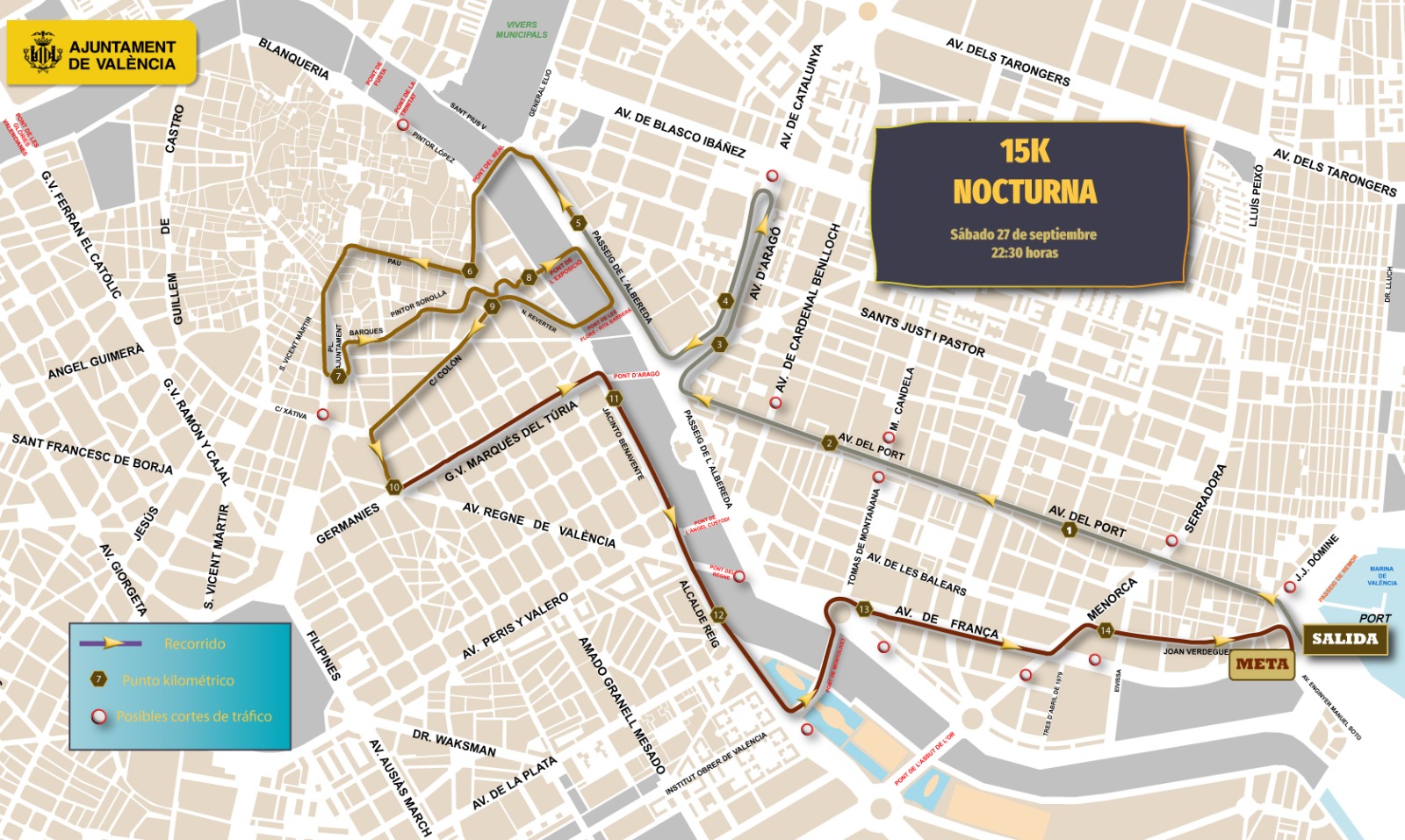 - La prueba se disputa este sábado, 27 de septiembre, a partir de las 22:30 horas, con un recorrido que permite disfrutar de lugares “icónicos” de la ciudad como el Estadio de Mestalla, el Puente del Real, la calle de la Paz, la plaza de la Reina, la del Ayuntamiento o la Ciudad de las Artes y las Ciencias, entre otros.