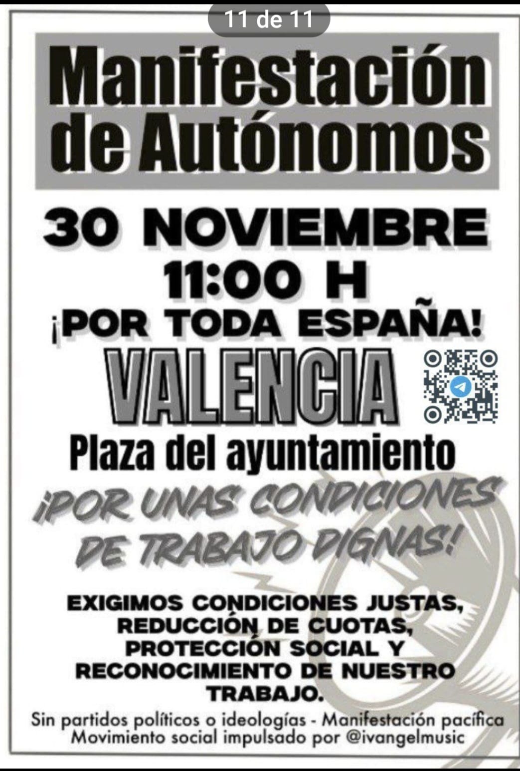 Los trabajadores por cuenta propia de la comunidad Valenciana Unidos en la plataforma por la dignidad de los autónomos han convocado el próximo día 30 de noviembre una manifestación para gritar que «los autónomos estamos asfixiados, basta ya».