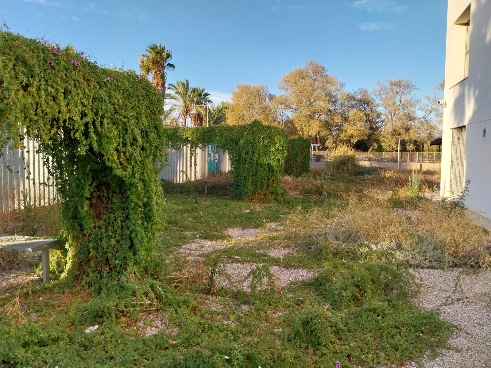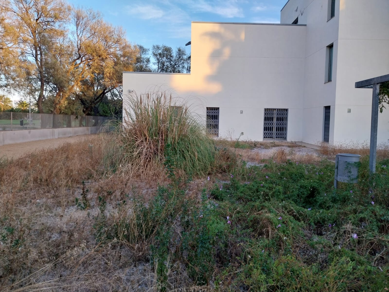 Un edificio municipal donde se hacen actividades para niños y jóvenes, pero también se imparten cursos de la Universitat Popular, eso sí, rodeado de chabolas junto al edificio, y con un patio abandonado donde la vegetación crece de manera salvaje ya que nadie hace meses y meses ha actuado en la zona, nos atreveríamos a decir que hace años.
