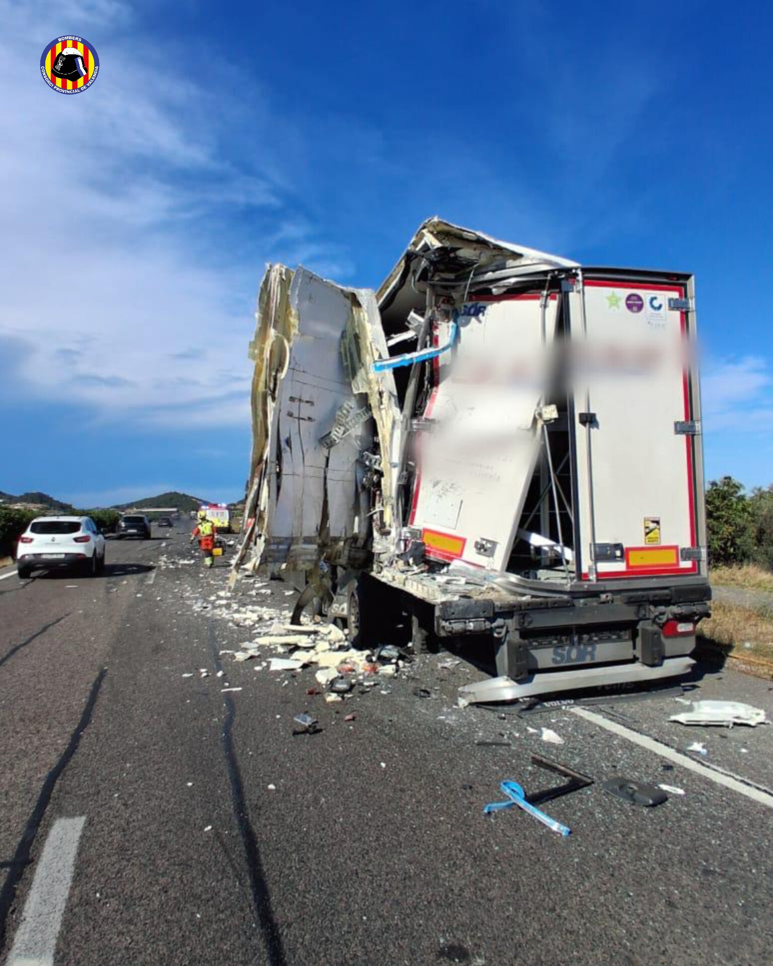 Accidente en la AP-7 a la altura de Almenara: Colisión entre dos camiones moviliza a los bomberos de Valencia y Castellón
