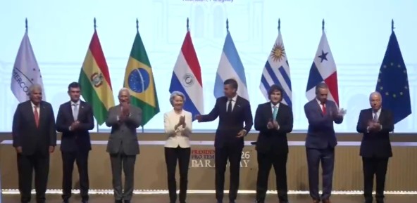 ASUNCIÓN (PARAGUAY).– Tras 26 años de idas y venidas, la Unión Europea y el bloque Mercosur (Brasil, Argentina, Uruguay y Paraguay) han sellado este sábado en Asunción un acuerdo de libre comercio que redefine el tablero geopolítico mundial. En un acto cargado de simbolismo en el Gran Teatro José Asunción Flores, líderes de ambos continentes —entre ellos Ursula von der Leyen, Javier Milei y António Costa— se han dado la mano para oficializar una alianza que crea la mayor zona de libre intercambio por volumen de población.