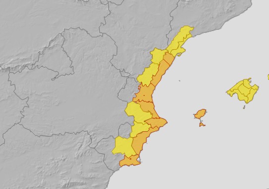 En este día sólo se queda sin avisos activos para el sábado el interior norte de la provincia de Valencia.