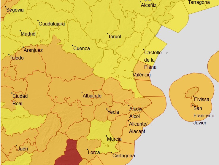 - Alicante y Valencia alertas activadas desde las 9:00h de la mañana a las 23:59h.