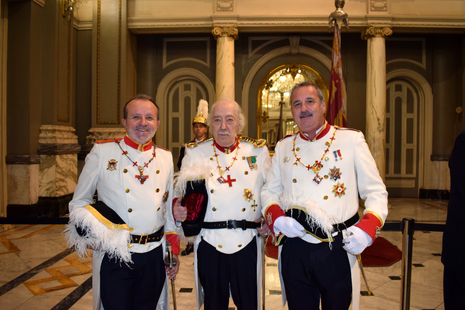 Varios caballeros portaban el uniforme de Gala y custodiaron por varias horas junto a la Guardia real de la Policía Local de Valéncia la Real Senyera de la Ciutat i Regne de Valéncia.