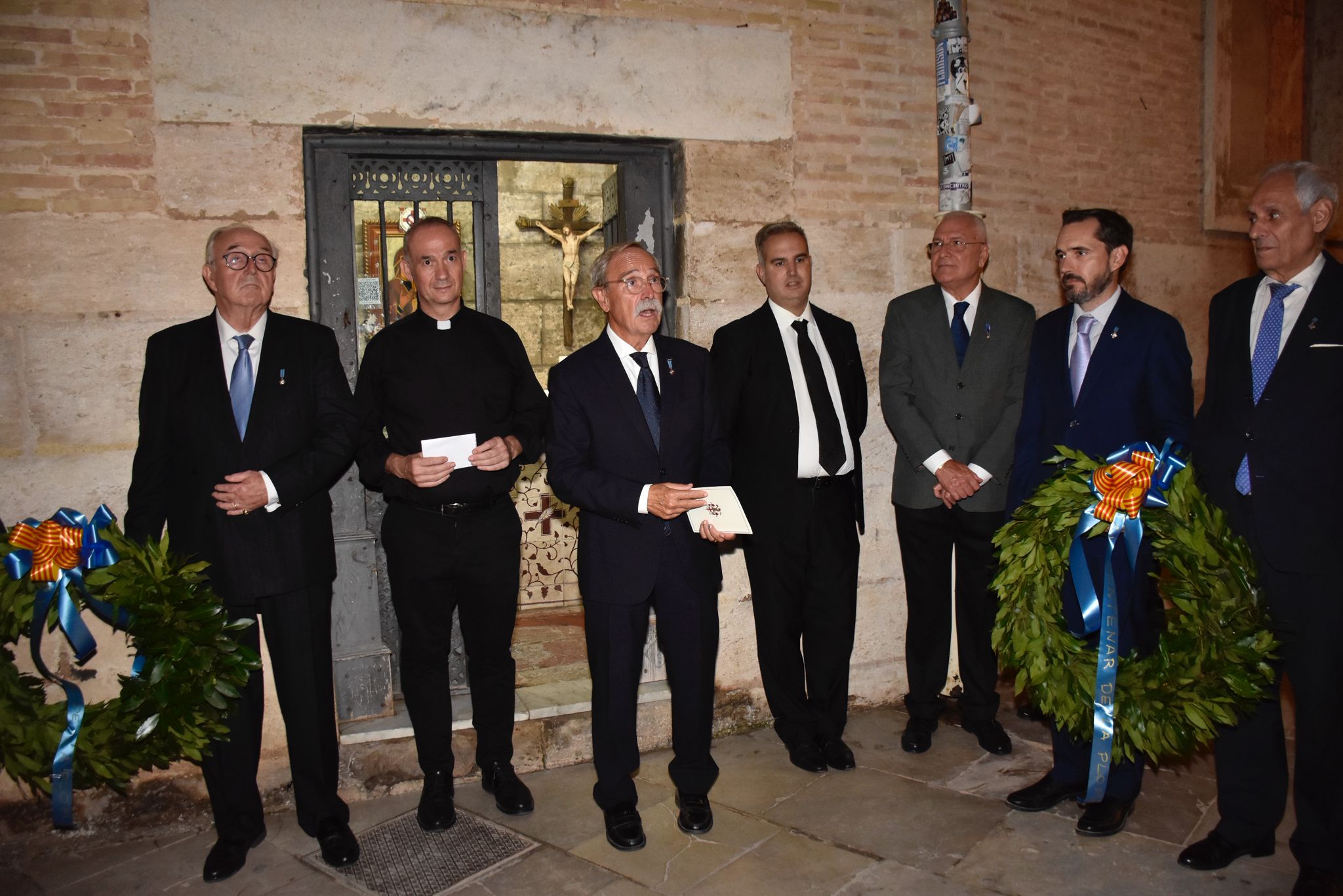 Después junto con D Álvaro Almenar, vicerector de la Basílica y Celador del Santo Cáliz se dirigieron a la denominada como Capelleta del Centenar tras el altar mayor que a la calle y allí depositaron un corona de laurel a los Caballeros difuntos de la órden.