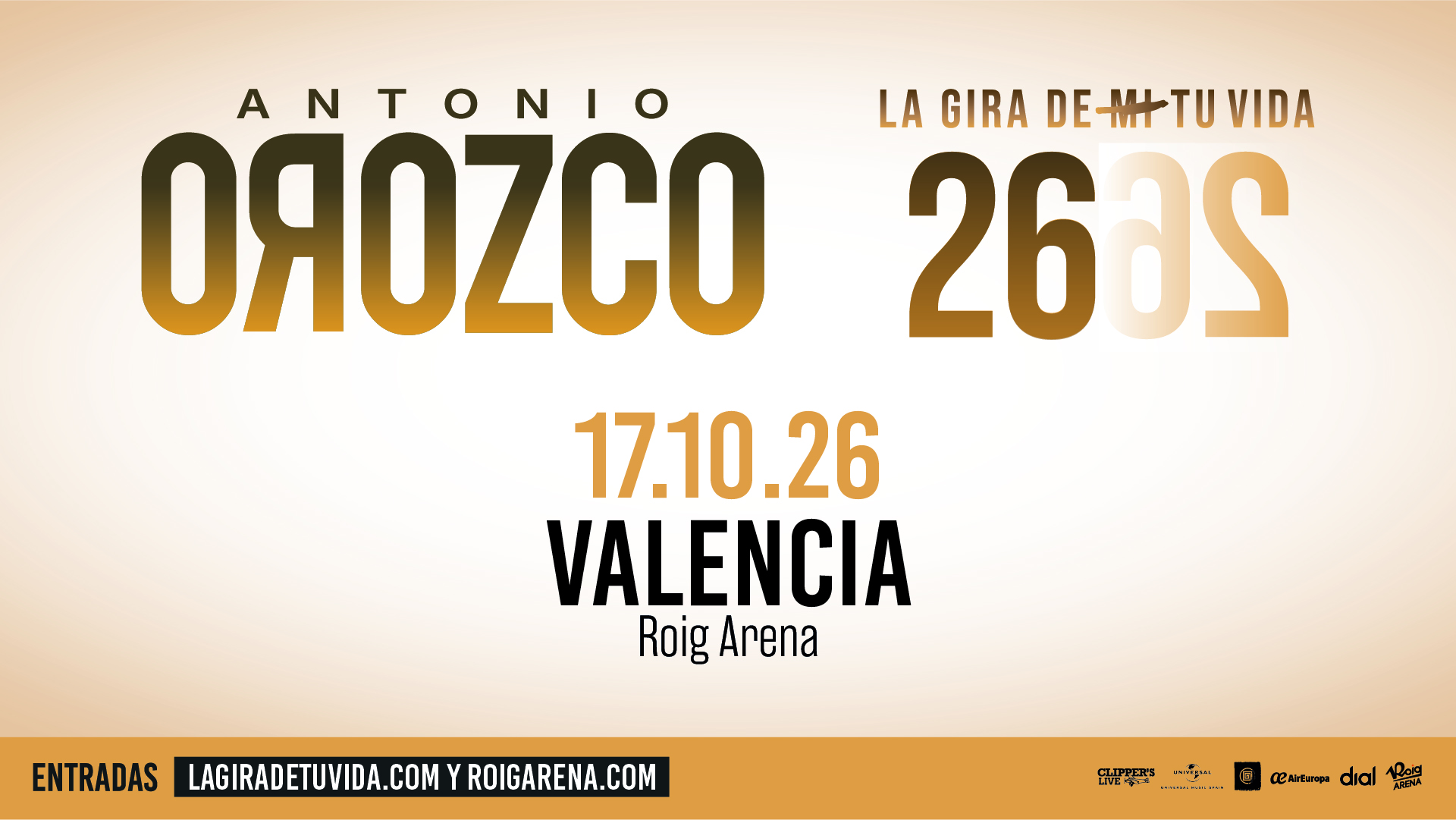 Valencia, 12 de diciembre de 2025.- Tras el éxito de “La gira de mi vida”, Antonio Orozco anuncia una nueva etapa en su trayectoria en directo con “La gira de tu vida”, que hará parada en el Roig Arena el 17 de octubre de 2026. El proyecto surge como una continuación natural de una propuesta que ha conectado con miles de personas a lo largo del último año. El nuevo tour sitúa al público en el centro del relato y reconoce la importancia que sus vivencias han tenido en el desarrollo de la carrera del artista.