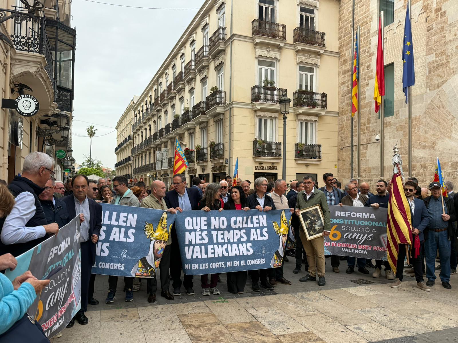 VALÉNCIA. – El tablero político valenciano vive una de sus jornadas más tensas en torno a este 25 d’Abril, festividad que conmemora la pérdida de los fueros. En una concentración cargada de simbolismo frente a Les Corts, la Associació de Juristes Valencians, respaldada por los principales sindicatos y representantes de la sociedad civil, ha alzado la voz contra lo que consideran una «burla institucional» por parte del Consell y, específicamente, del Partido Popular.