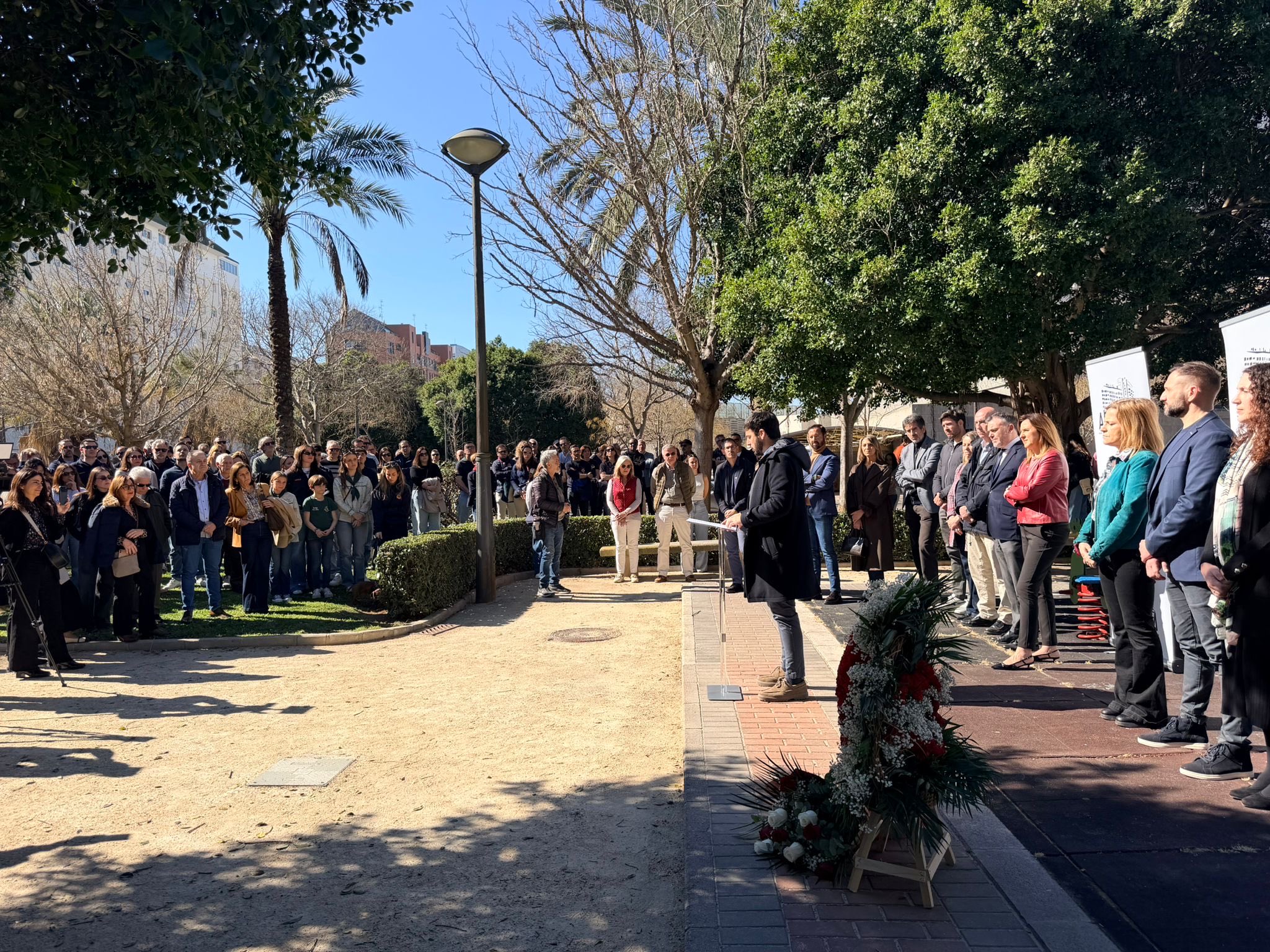 El acto, que comenzó a las 12:00 horas en el parque adyacente al edificio, estuvo marcado por la solemnidad. Bajo los acordes de un violín y un violonchelo, los asistentes depositaron diez flores blancas, una por cada víctima mortal de aquel fatídico jueves de 2024.