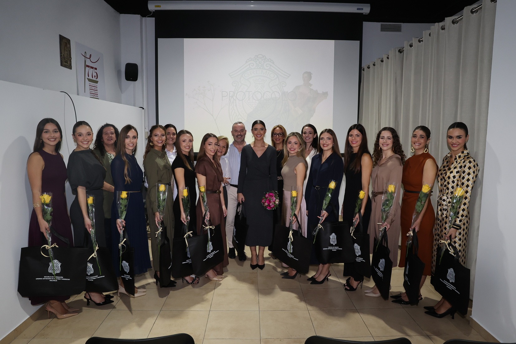 Durante su recorrido, Carmen y su Corte descubrieron de primera mano el talento y la dedicación que se imparten en este centro, donde se forman los artesanos que dan forma a la indumentaria valenciana. La jornada incluyó una fascinante charla sobre protocolo y códigos de vestimenta, impartida por los expertos Blanca García y Fran Tochena, quienes destacaron la importancia de cada detalle, desde las prendas hasta el calzado, en la elegancia fallera.