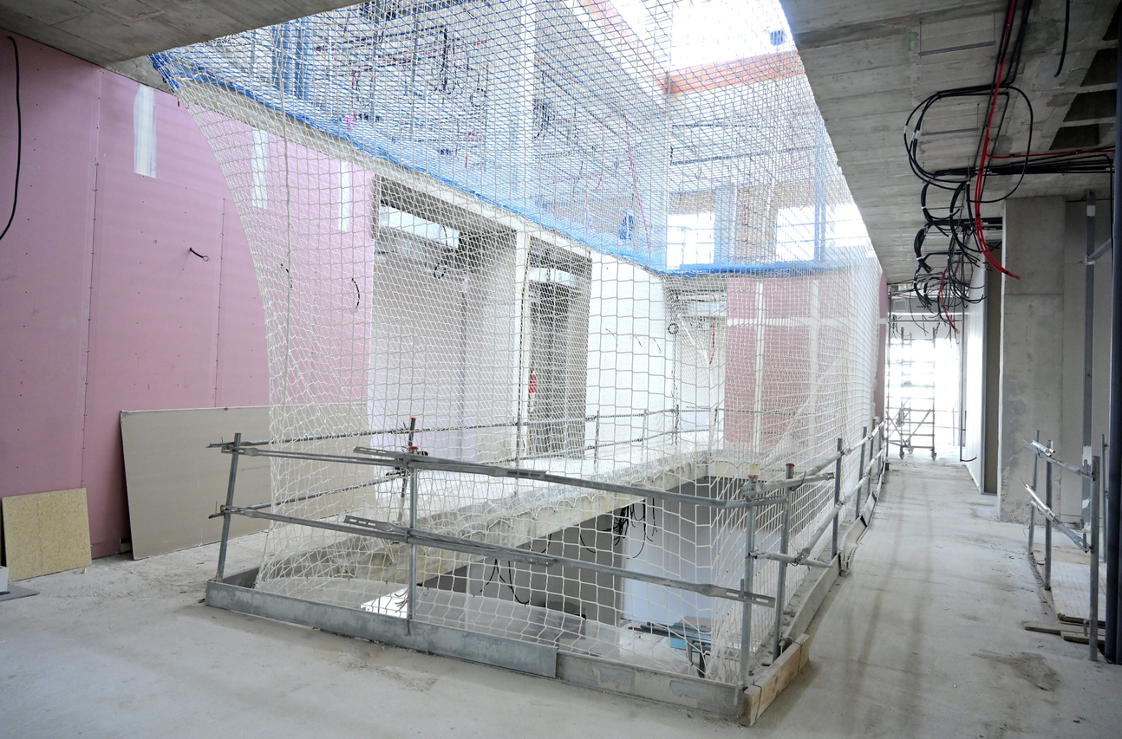 Actualmente, los trabajos se centran en el revestimiento de fachadas, tabiquería interior, cubiertas y la instalación de los sistemas de climatización.