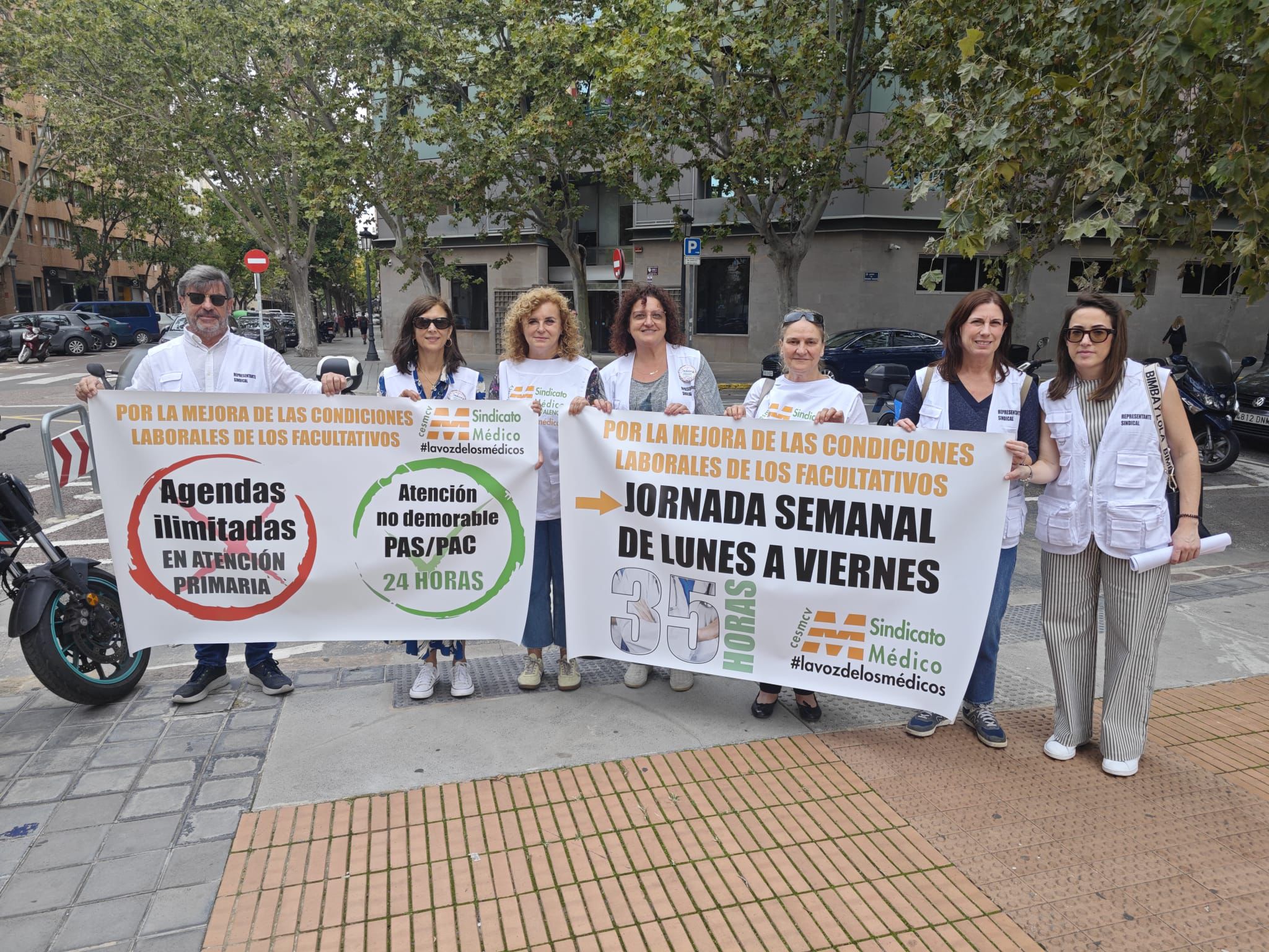Los delegados del Sindicato Médico de la Comunidad Valenciana (CESM-CV) se concentraron este lunes frente a la Consellería de Sanidad para exigir al conseller el cumplimiento de las promesas electorales realizadas hace más de dos años. Entre las demandas principales se encuentra la implementación de una jornada laboral ordinaria de 35 horas semanales de lunes a viernes y la apertura ininterrumpida de los Puntos de Atención Continuada (PAC) y los Centros de Asistencia Sanitaria (PAS) las 24 horas del día, todos los días del año.