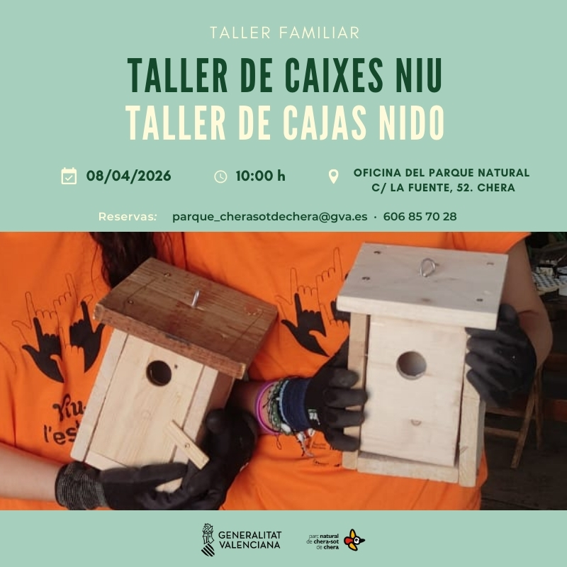 CHERA – El Parque Natural de Chera-Sot de Chera continúa reforzando su compromiso con la educación ambiental y la protección de la fauna autóctona. El próximo miércoles 8 de abril de 2026, el parque organizará una jornada técnica y práctica centrada en la avifauna, donde los asistentes podrán participar activamente en la construcción e instalación de cajas nido.