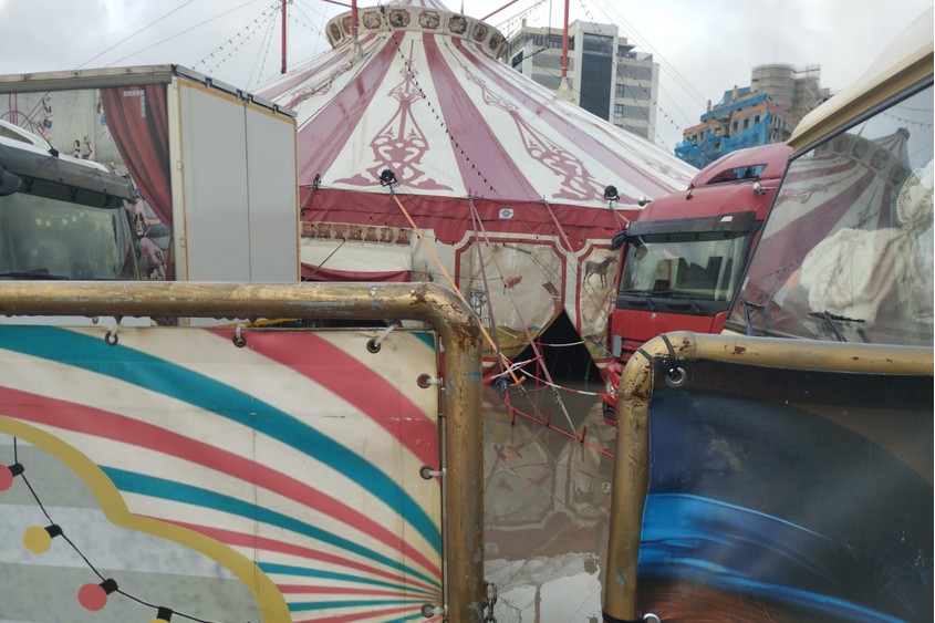 El mal tiempo ha jugado una mala pasada al Circo Raluy Legacy que esta mañana tiene sus accesos completamente inundados.