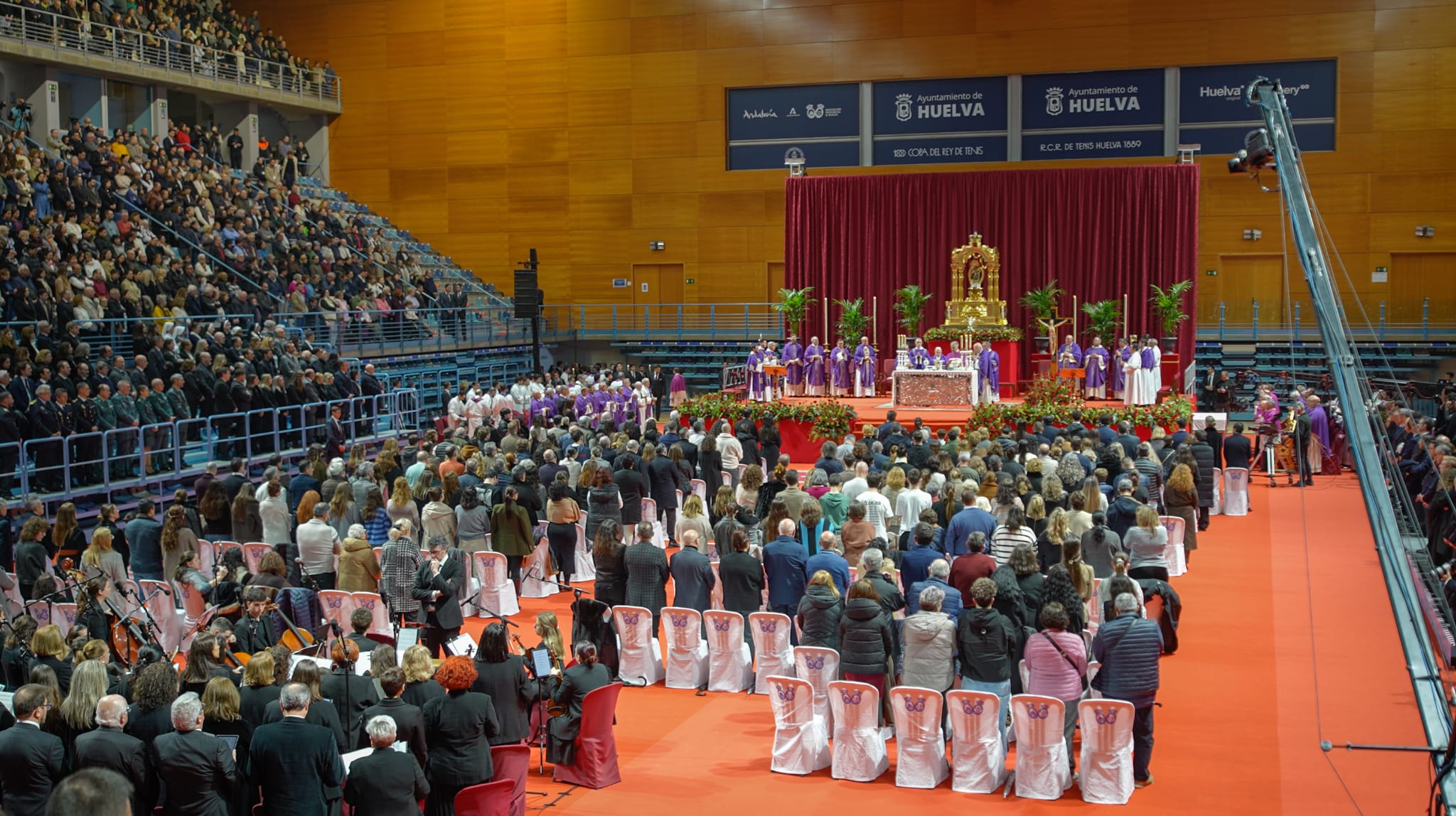 HUELVA | El Palacio de Deportes «Carolina Marín» se convirtió ayer en el epicentro del duelo nacional, pero también de una profunda indignación civil. Unas 4.300 personas se congregaron para despedir a las 45 víctimas del choque ferroviario de Adamuz en una ceremonia organizada por el Obispado y la sociedad civil onubense, tras el fracaso del funeral de Estado propuesto inicialmente por el Gobierno.