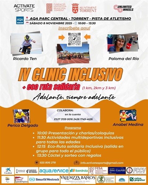 Organizado por Activate Sports y Unlimited Wheels, el Clínic cuenta con el respaldo institucional del Ayuntamiento de Torrent, junto a la Generalitat Valenciana, la Diputación de Valencia, la Fundación Deportiva Municipal de Torrent, la Fundación Deportiva Municipal de Valencia, el Comité Paralímpico Español, la Federación de Deportes Adaptados de la Comunitat Valenciana (FESA) y la Federación de Ciclismo de la Comunitat Valenciana (FCCV), entre otros organismos.