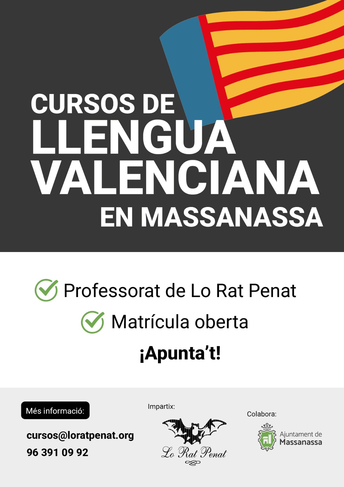 L’entitat valencianista Lo Rat Penat, fundada en 1878, impartirà cursos de llengua valenciana en el municipi de Massanassa a partir del primer dimarts de decembre.