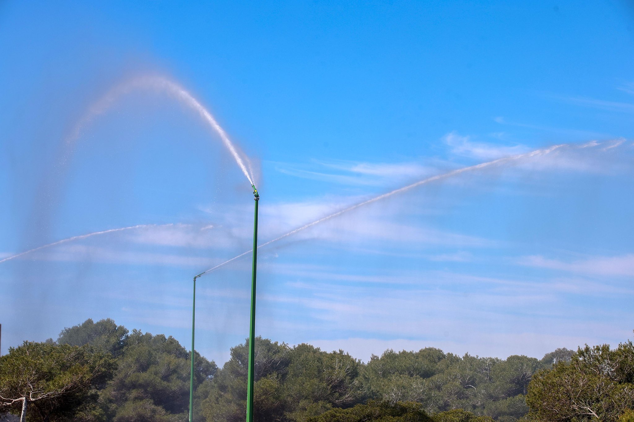 La inversión para estos tres cañones adicionales ha ascendido a 178.544,90 euros. Estas estructuras, que alcanzan una altura de entre 12 y 16 metros, son capaces de lanzar agua a una distancia de 42 metros. Una de sus características principales es su autonomía energética, además de estar conectados a un depósito de agua propio. Con la suma de estas unidades, el sistema SIDEINFO de la Devesa cuenta ahora con una capacidad de movilización de agua de 10.000 litros por minuto. Para poner esta cifra en perspectiva, el volumen de agua disponible equivale a casi el doble de la descarga que realiza un avión anfibio convencional, cuya capacidad ronda los 6.000 litros.