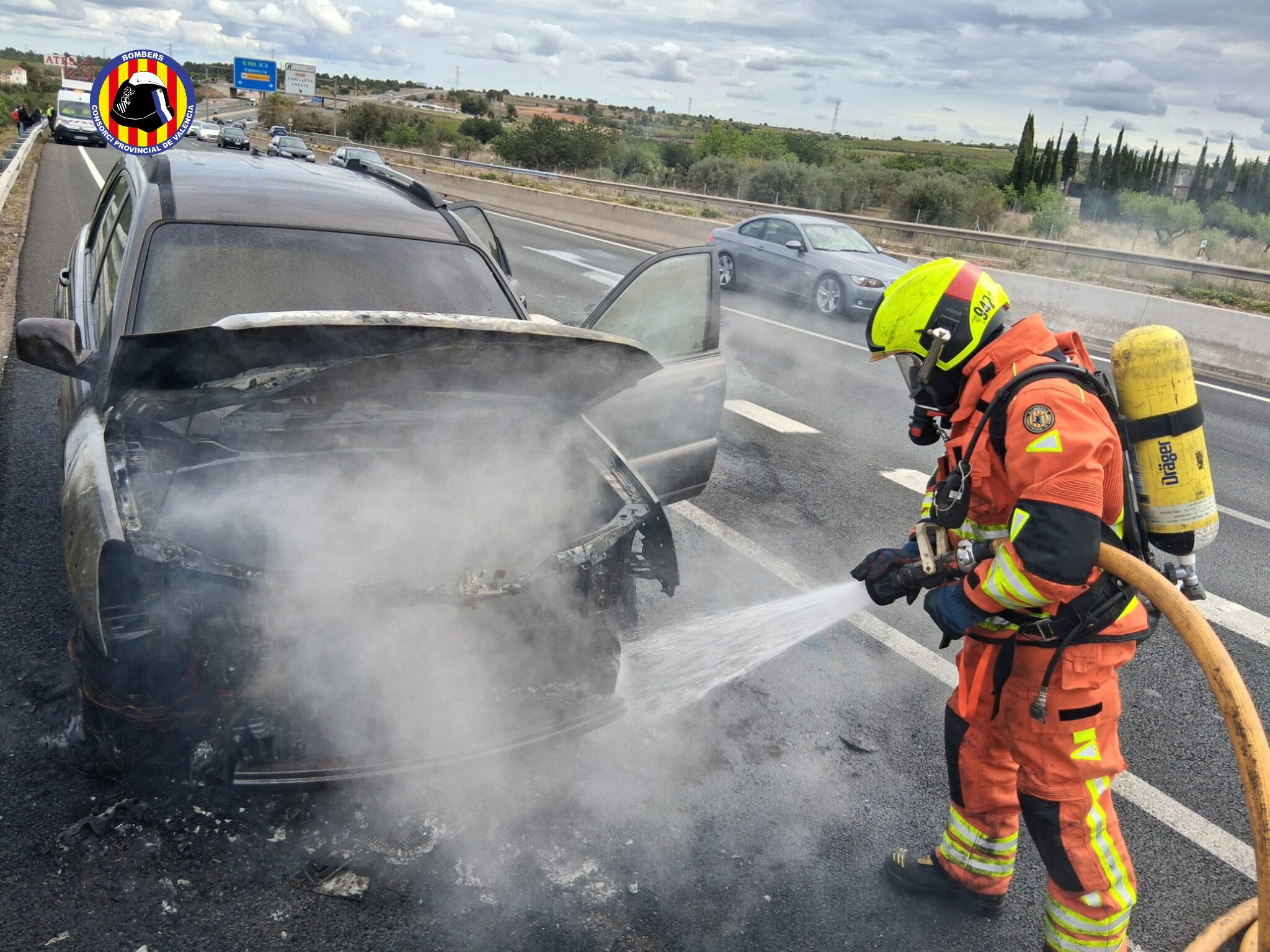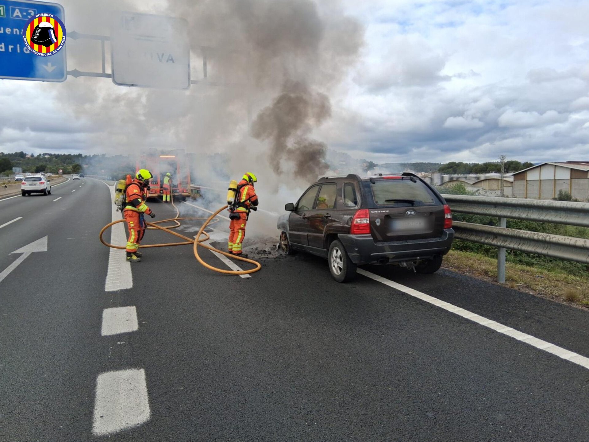 Efectivos del parque de Bomberos de Chiva se desplazaron de inmediato hasta el punto kilométrico indicado, donde el motor de un vehículo había comenzado a arder de forma violenta. Las columnas de humo negro, visibles desde varios kilómetros de distancia, obligaron a reducir la velocidad en los carriles adyacentes por falta de visibilidad. Los bomberos trabajaron intensamente en el enfriamiento del chasis y la extinción de los focos principales, logrando estabilizar la situación en pocos minutos. A falta de un peritaje oficial, las primeras hipótesis apuntan a un fallo mecánico fortuito como origen del siniestro.