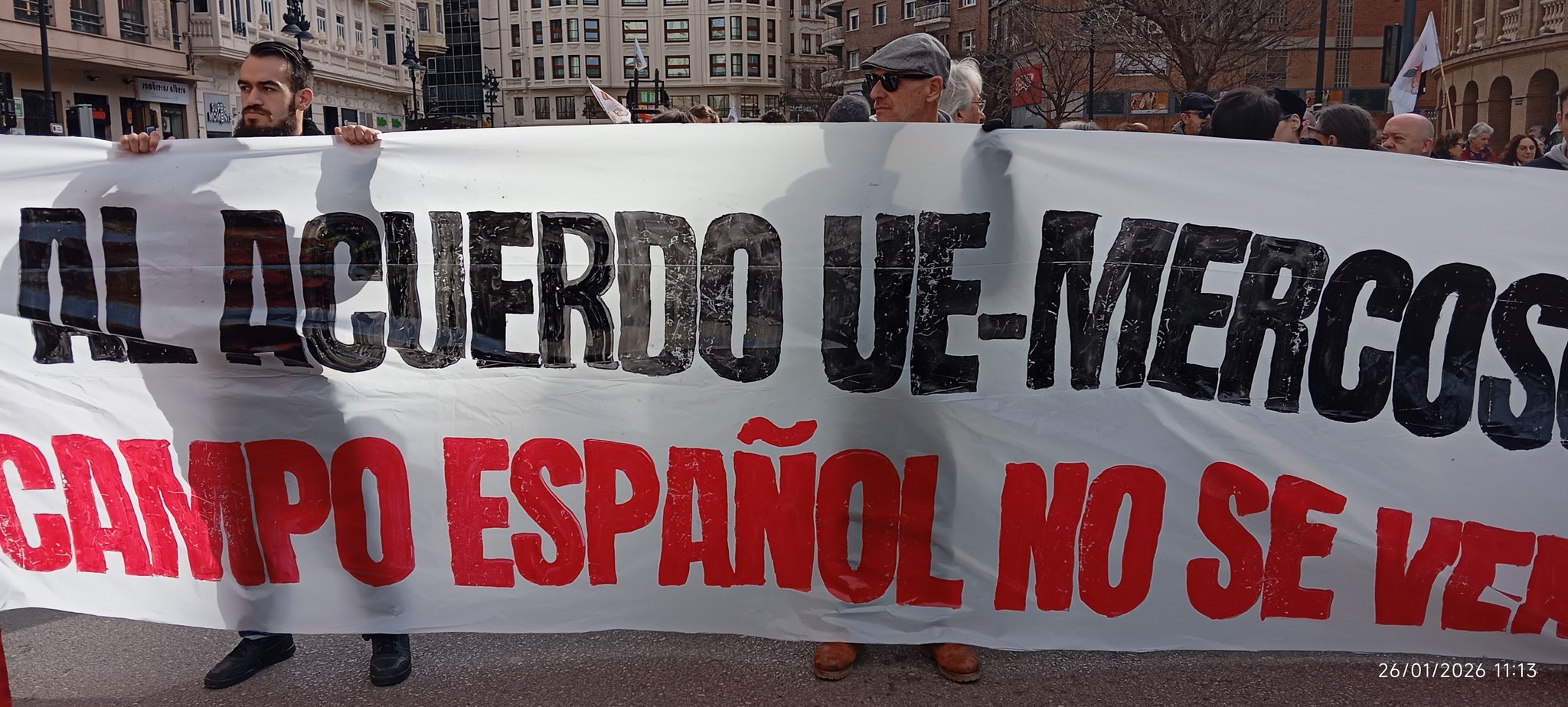 VALENCIA | Lunes, 26 de enero de 2026 — Las calles del corazón de Valencia han quedado hoy completamente paralizadas por una movilización masiva de agricultores. Convocados por plataformas independientes y bajo el lema «Nuestro fin es vuestro hambre», más de un centenar de tractores y miles de manifestantes han convertido las principales arterias de la ciudad en un clamor contra el acuerdo comercial entre la Unión Europea y el bloque de Mercosur.