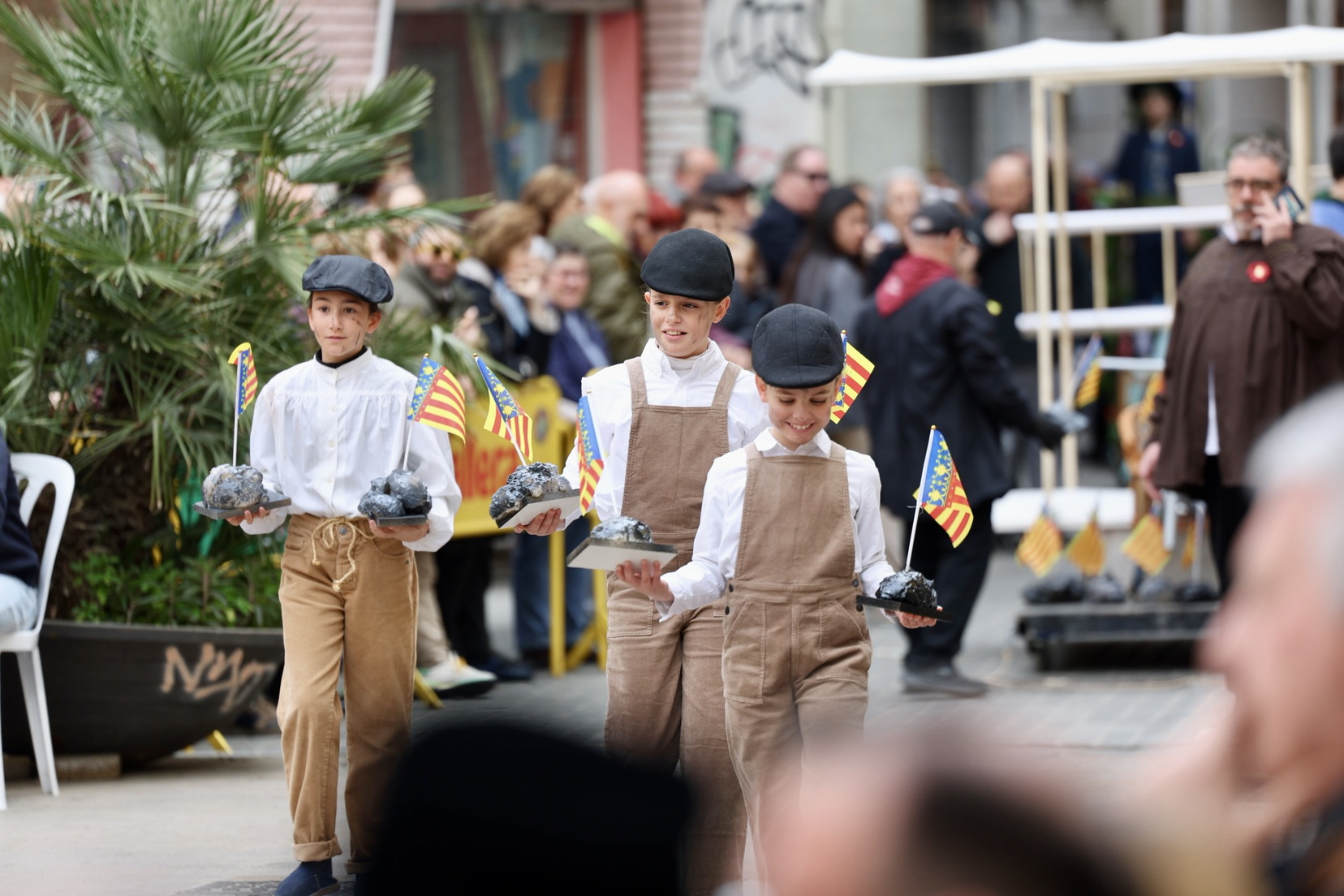 A lo largo de la mañana, diversas comisiones del sector y de otros distritos de Valencia han desfilado ante el jurado, transformando la plaza en un museo vivo. El objetivo: recrear la antigua costumbre de recoger «trastos» viejos para las hogueras de San José. Al grito de «¿Hi ha una estoreta velleta per a la falla de Sant Josep?», los niños, ataviados con indumentaria de época y portando enseres antiguos, han vuelto a dar vida a personajes típicos de la Valencia de antaño.