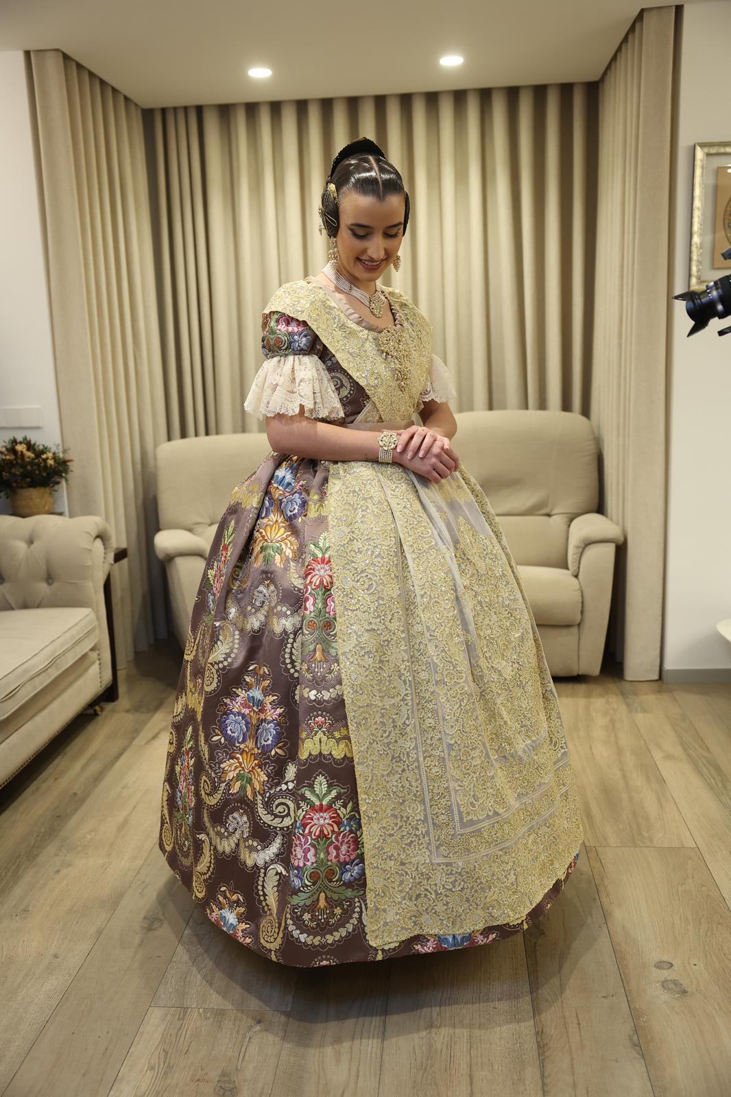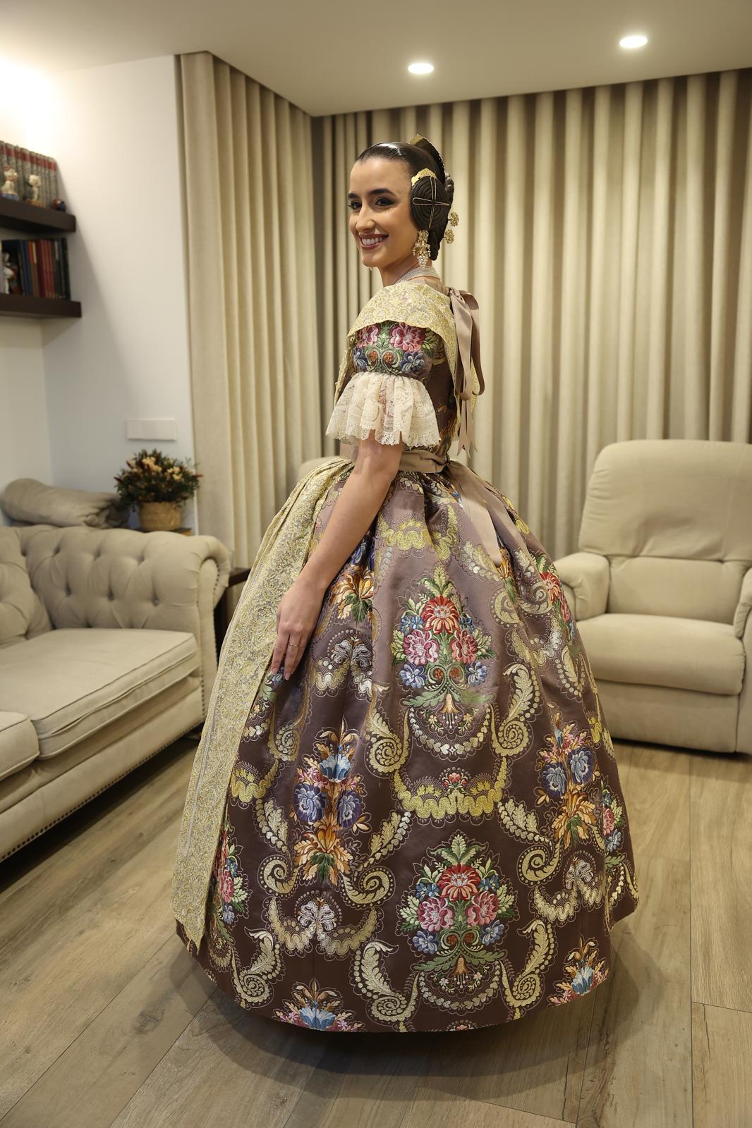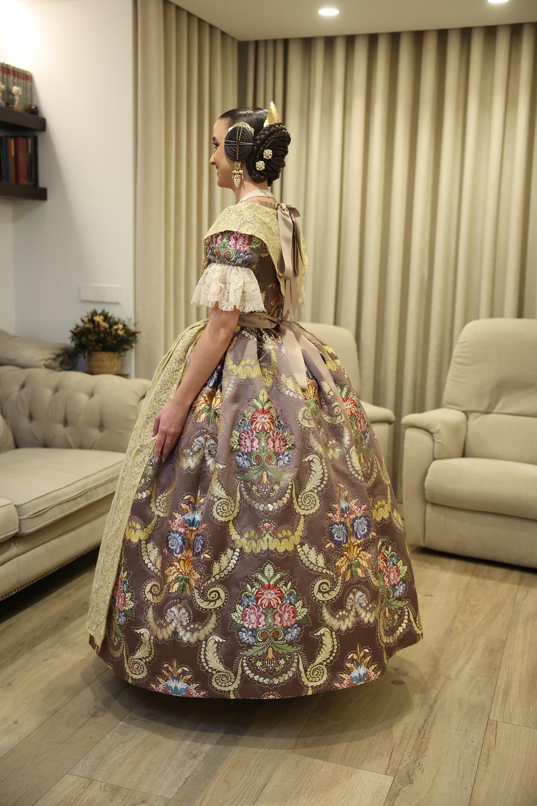 El tono “Terreta” destaca por ser neutro, versátil y de una elegancia atemporal. Según fuentes cercanas a la Fallera Mayor, este color ocupó un lugar privilegiado en su corazón desde los primeros instantes del proceso de elección. Para ella, la «terreta» no representa un punto geográfico, sino una «manera de sentir», y esa esencia debía quedar inmortalizada en el tejido más importante de su reinado.