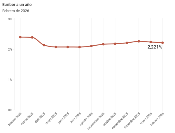 El mercado hipotecario español recibe un nuevo respiro. El Euríbor a un año, el índice de referencia para la mayoría de los préstamos variables en España, ha cerrado el mes de febrero situándose en el 2,221%. Este dato supone un descenso respecto al 2,245% registrado en enero y consolida la tendencia a la baja que viene marcando el inicio del ejercicio 2026.