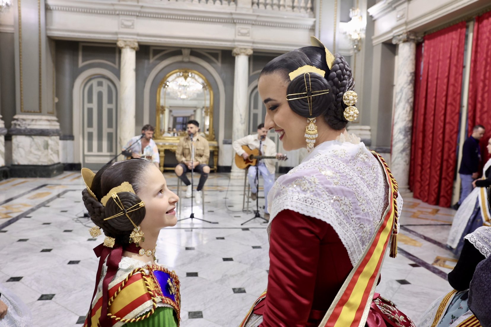 VALÉNCIA. – En el corazón del consistorio valenciano, allí donde las lámparas de cristal de Bohemia custodian los secretos de la ciudad, la música pop y la tradición fallera se fundieron este mediodía en un abrazo acústico. El grupo valenciano Bombai ha ofrecido un concierto privado y exclusivo para las máximas representantes de la fiesta, las Falleras Mayores de Valéncia, en un acto que ha servido de preludio melódico antes del estruendo de la mascletà.