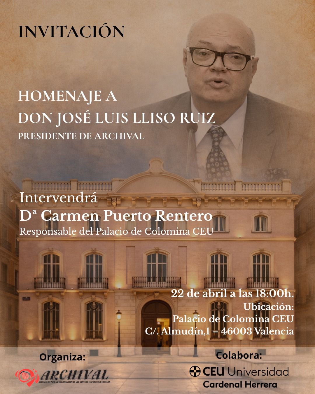 Desde ARCHIVAL, con el apoyo de instituciones como la Revista EOS y algunos medios de comunicación comarcales se ha iniciado una campaña para que el Ayuntamiento de Valencia otorgue el nombre de una calle a D. José Luis Lliso Ruiz. Es el tributo de justicia para un luchador incansable que, como reza el lema de la asociación, siempre creyó que «las piedras son la materia, los monumentos nuestra historia y el ser humano el firme defensor de preservarlas». Valencia tiene una deuda con su protector, y el próximo 22 de abril se empezará a saldar.