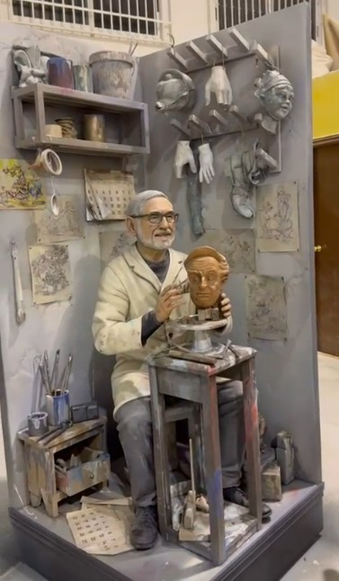 VALENCIA – En el corazón de la Exposición del Ninot 2026, entre el olor a pintura fresca y el murmullo incesante de los visitantes que recorren la Ciudad de las Artes y las Ciencias, hay una obra que ha logrado detener el tiempo. No se trata solo de una pieza de arte efímero; es un puente generacional, un abrazo de despedida y, sobre todo, un acto de amor filial. La Falla Ribera-Convento Santa Clara (Telefónica) ha presentado su gran apuesta para el ejercicio: un homenaje directo al gran maestro fallero Miguel Santaeulalia, realizado por las manos de su propio hijo, Miguel Santaeulalia Serrán.