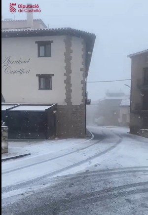 En poblaciones como Morella y cercanías acumulan ya entre 4-5 centrímetros de nieve que con la llegada de la noche y con el frío se pueden convertir en placas de hielo. De hecho a las 16:00h se registraban en la zona temperaturas entre 0 y -2ºC y se espera que conforme avance la noche empiecen a descender aún más las temperaturas.