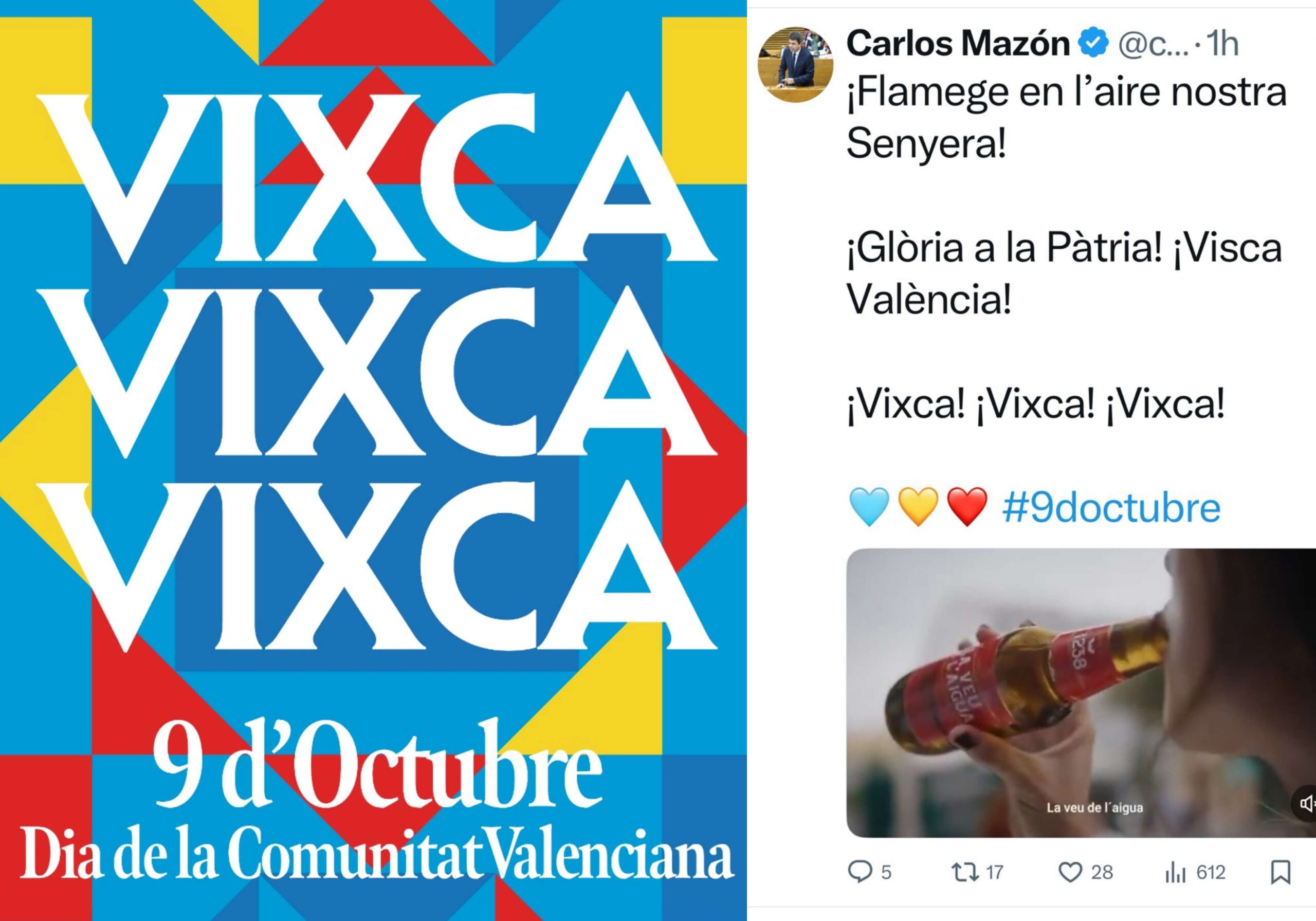 Y es que cuando no se tiene clara una cosa se lía parda a la primera de turno… como ha hecho quien lleva la cuenta de X del president de la Generalitat Valenciana Carlos Mazón, d¡que desde luego muchas luces no debe tener ignorando el valenciano, poniendo en el mismo párrafo un ViXca y un ViSca, dando a entender que no sabe ni cómo es en la forma valenciana: