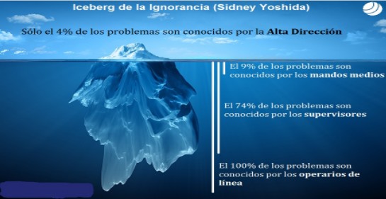 En 1989, el profesor Sidney Yoshida, tras estudiar la quiebra de múltiples empresas japonesas, formuló la teoría del Iceberg de la ignorancia: Solo el 4 % de los problemas reales de una organización llegaban a la alta dirección; si bien el 96 % restante, también era conocido por quienes estaban en primera línea. Esta desconexión explicaba el fracaso de muchas organizaciones empresariales sin haberlo visto venir, ya que sólo la alta dirección era quien podía haber tomado las decisiones estructurales y organizativas eficaces, que evitasen el desastre.