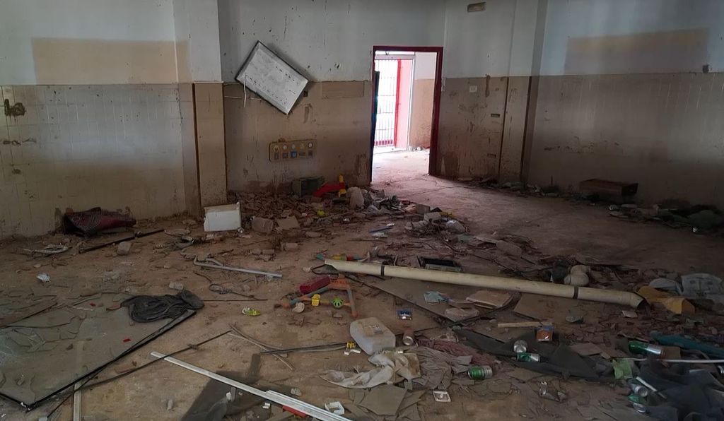 Dentro de lo que fue la guardería del barrio, el silencio duele. El barro seco cubre las paredes como una segunda piel. Las sillas pequeñas y los juguetes rotos parecen mirar al vacío, esperando que algún día vuelvan los pasos diminutos que daban sentido a aquel lugar. “El ayuntamiento empezó un proyecto de reconstrucción, pero ya ha pasado un año y no se ha hecho nada”, lamenta un vecino.