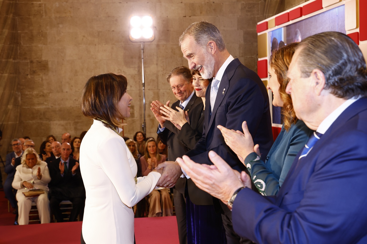 A continuación, Su Majestad el Rey, acompañado de la ministra de Ciencia, Innovación y Universidades; la alcaldesa de Valencia, presidente y presidente ejecutivo de la Fundación Valenciana Premios Jaime I, hizo entrega de los galardones a los premiados.