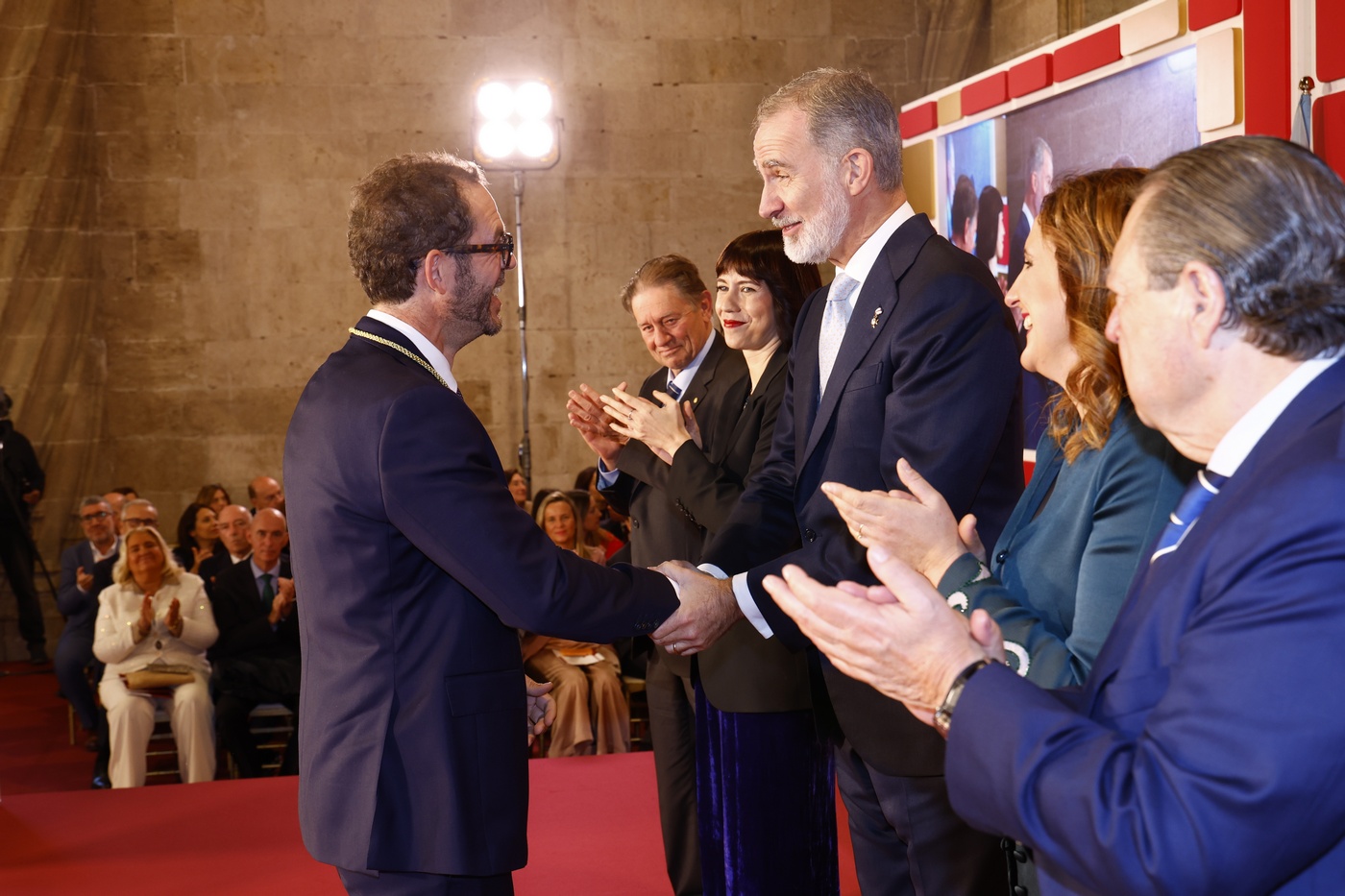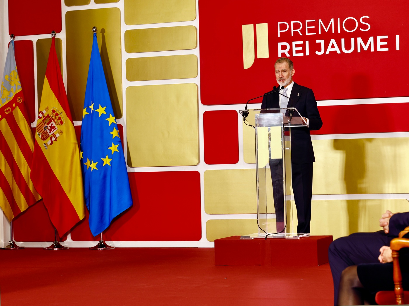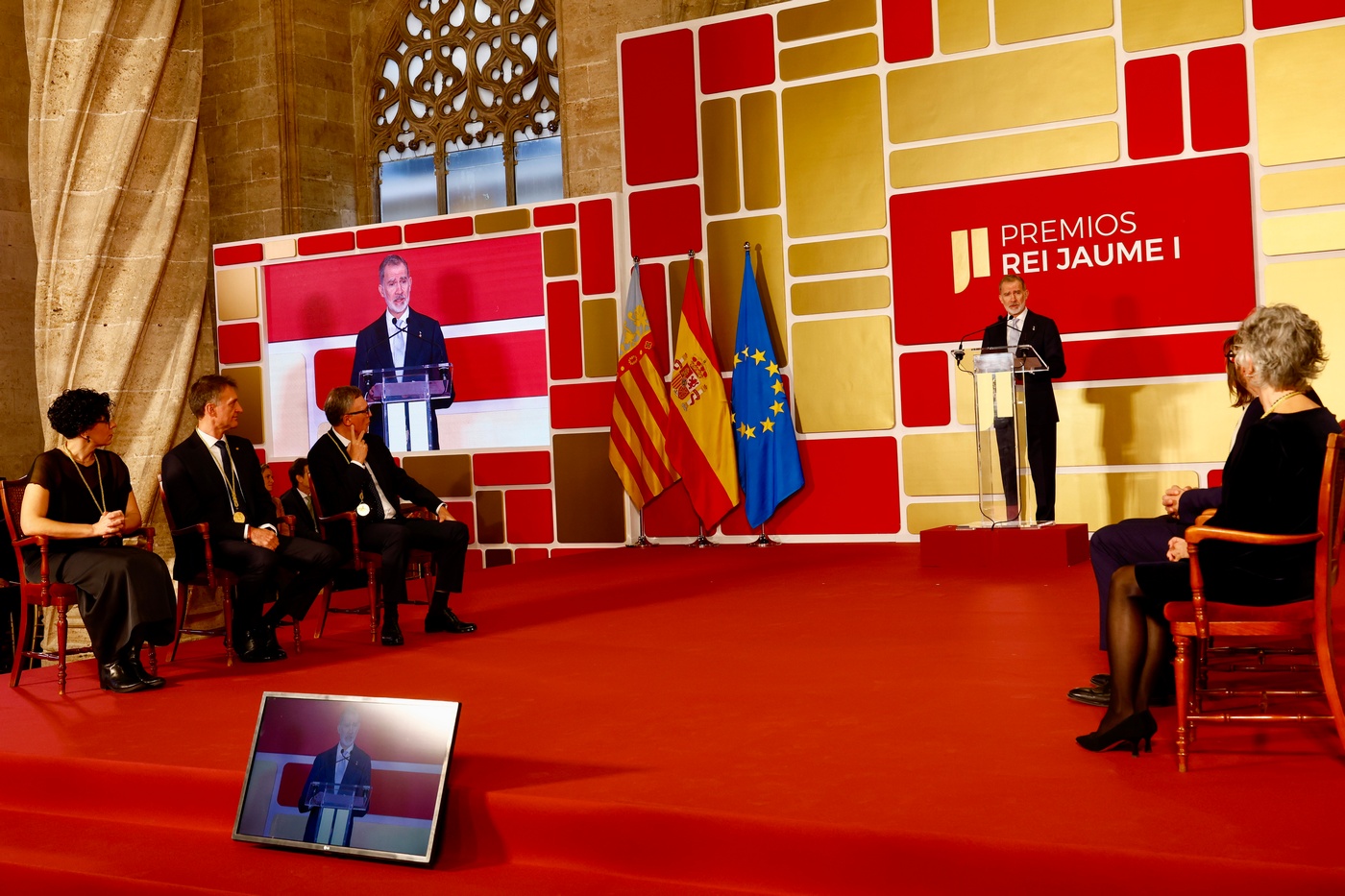 Don Felipe presidió en la Lonja de los Mercaderes de Valencia la ceremonia de entrega de la 37ª edición de los “Premios Rei Jaume I” 2025, que visibilizan y refuerzan el apoyo a la ciencia, la investigación y al emprendimiento en España.