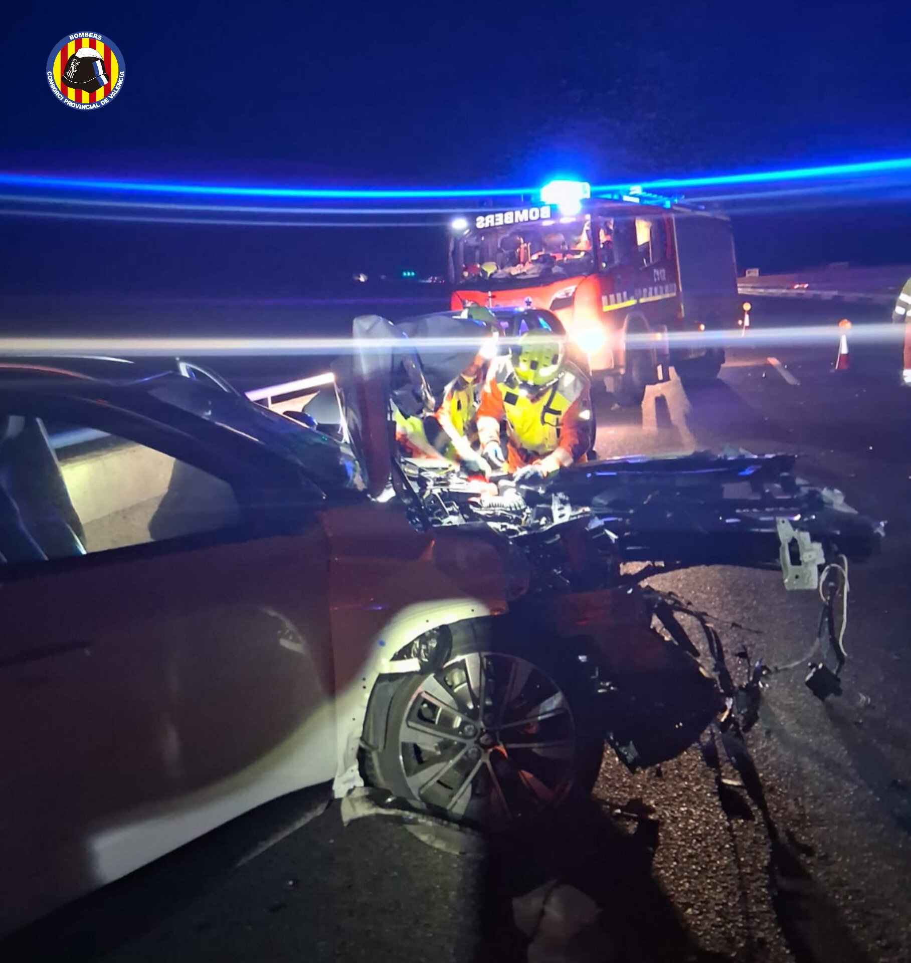 Hasta el lugar de los hechos se desplazó una dotación de Bomberos del Consorcio de Valencia procedentes del parque de Requena, bajo la supervisión de un sargento. Las labores de los efectivos se centraron en asegurar la zona y proceder a la desconexión de las baterías del vehículo volcado para evitar posibles incendios o riesgos eléctricos derivados del derrame de líquidos.