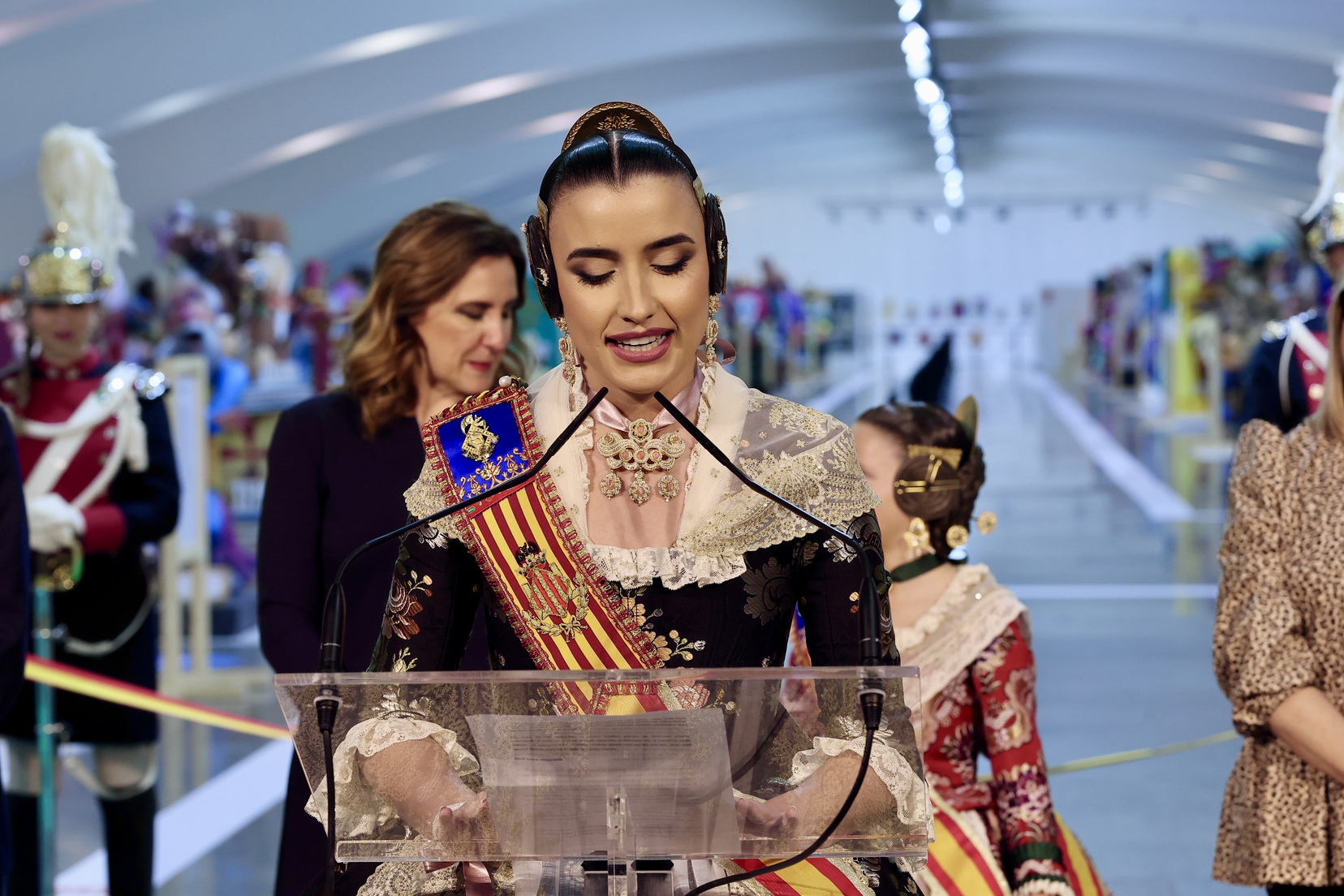 La Fallera Mayor de Valencia, Carmen Prades, visiblemente emocionada, quiso dedicar gran parte de su discurso a ensalzar el «oficio» y la «delicadeza» de los artistas. «Aquí no solo hay ninots; hay talento, hay horas de sueño perdidas y hay mucho corazón», señaló Prades, subrayando que la exposición es la manifestación artística más democrática y participativa que existe, donde el público tiene la última palabra sobre el destino de las obras.