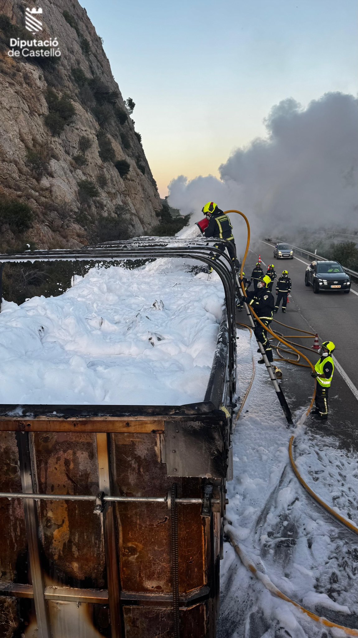 Hasta el lugar se desplazaron tres dotaciones de bomberos del parque de la Plana Alta. La labor de extinción no fue sencilla debido a la naturaleza de la carga: