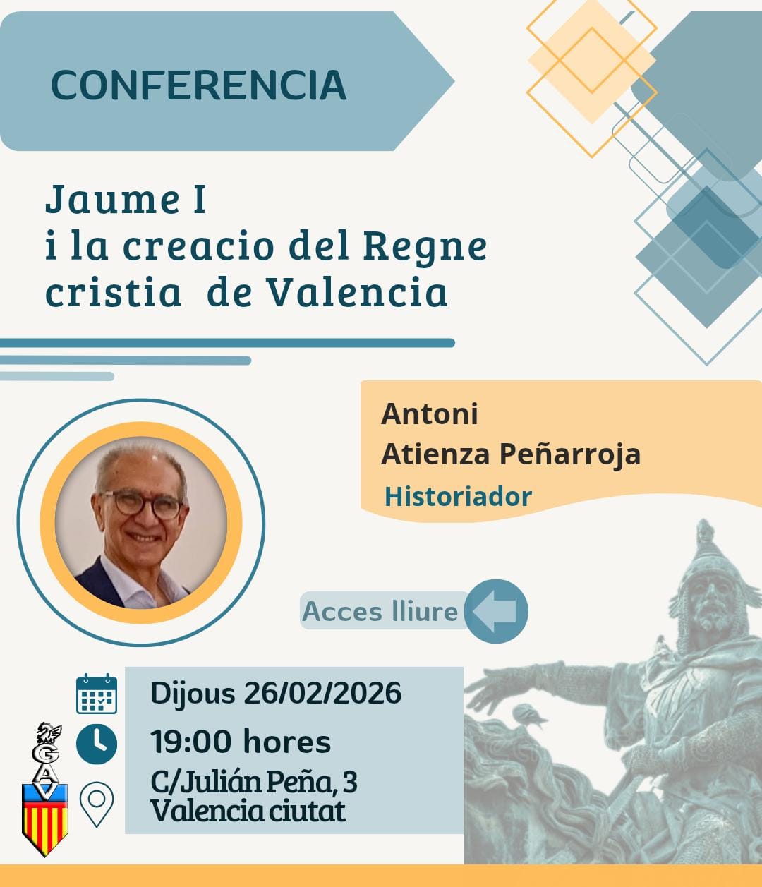 VALÉNCIA – El pròxim dijous 26 de febrer, la ciutat de Valéncia acollirà una nova cita en la seua història medieval. L’historiador Antoni Atienza Peñarroja serà l’encarregat d’impartir la conferència titulada «Jaume I i la creació del Regne cristià de Valéncia», un recorregut analític per les fites que varen donar forma a l’identitat política i jurídica del territori valencià en el sigle XIII.