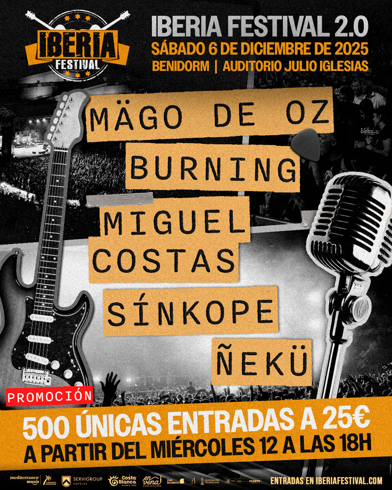 El Iberia Festival, referente indiscutible del rock patrio, anuncia la fecha de celebración de su 13ª edición: el sábado 6 de diciembre de 2025 en el Auditorio Julio Iglesias de Benidorm.