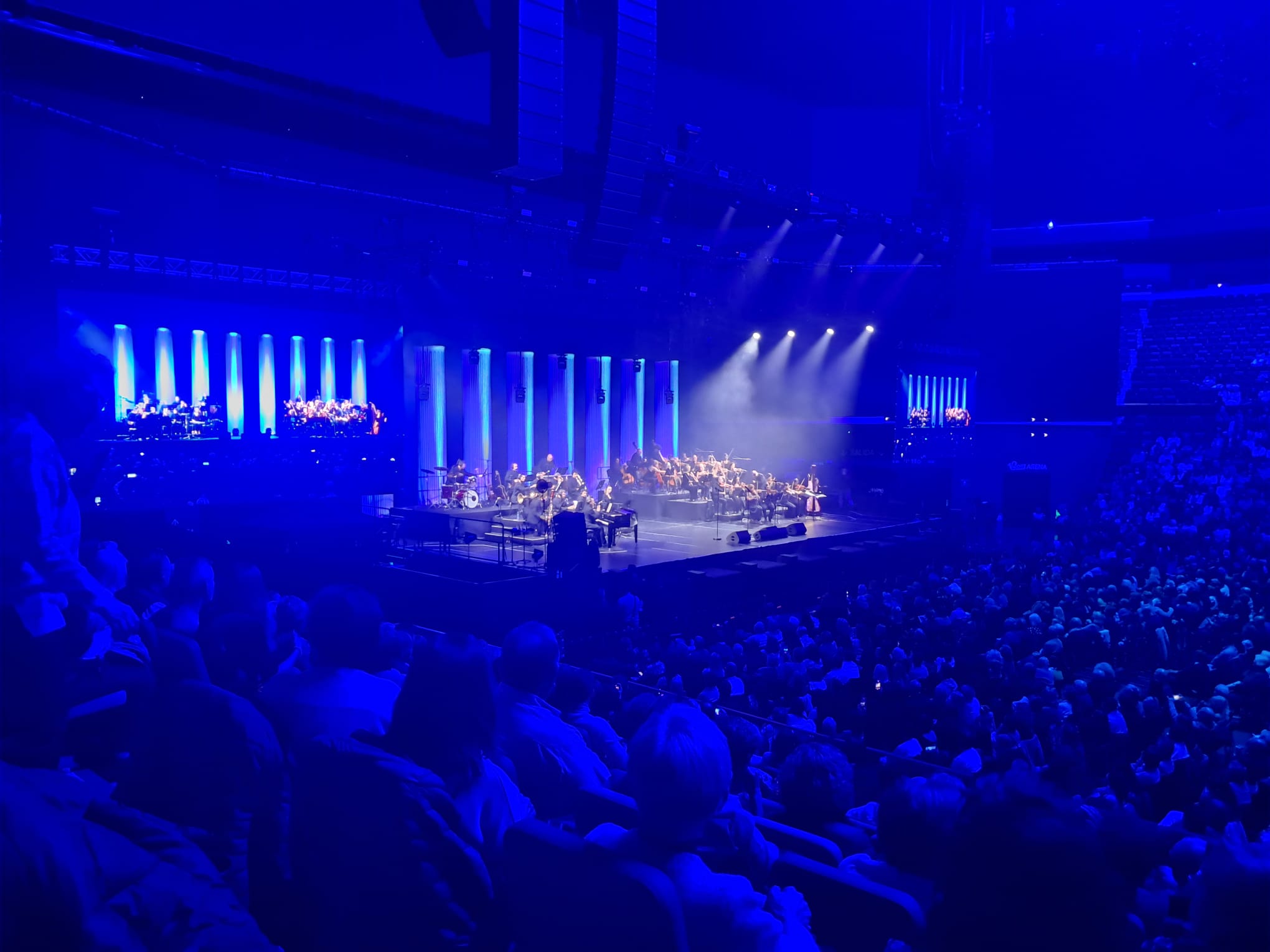 Iniciaron el concierto con «Now We Are Free», y sobre el mismo tan sólo como escenografía unas columnas romana blancas de fondo y dando todo protagonismo a la orquesta, para seguir con su gran éxito con el que ganaron el Festival de San Remo, «Grande Amore».