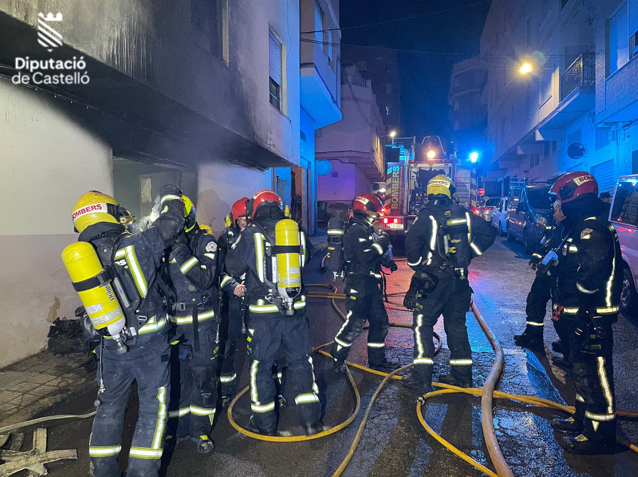 LA VALL D’UIXÓ – Un aparatoso incendio declarado en la noche de ayer causó graves daños materiales en una vivienda unifamiliar de La Vall d’Uixó. El fuego, que se originó en la planta baja del inmueble, calcinó por completo la zona de la cochera y generó una densa columna de humo que afectó a la totalidad de la estructura residencial.
