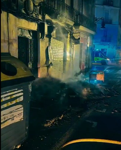 Una noche de calma se transformó en emergencia en las inmediaciones de la calle L’Estrella. Un aparatoso incendio, originado inicialmente en un grupo de contenedores de residuos urbanos, escaló rápidamente hasta afectar la estructura de un edificio colindante, dejando un balance de dos personas heridas y considerables daños materiales en el mobiliario público y la propiedad privada.