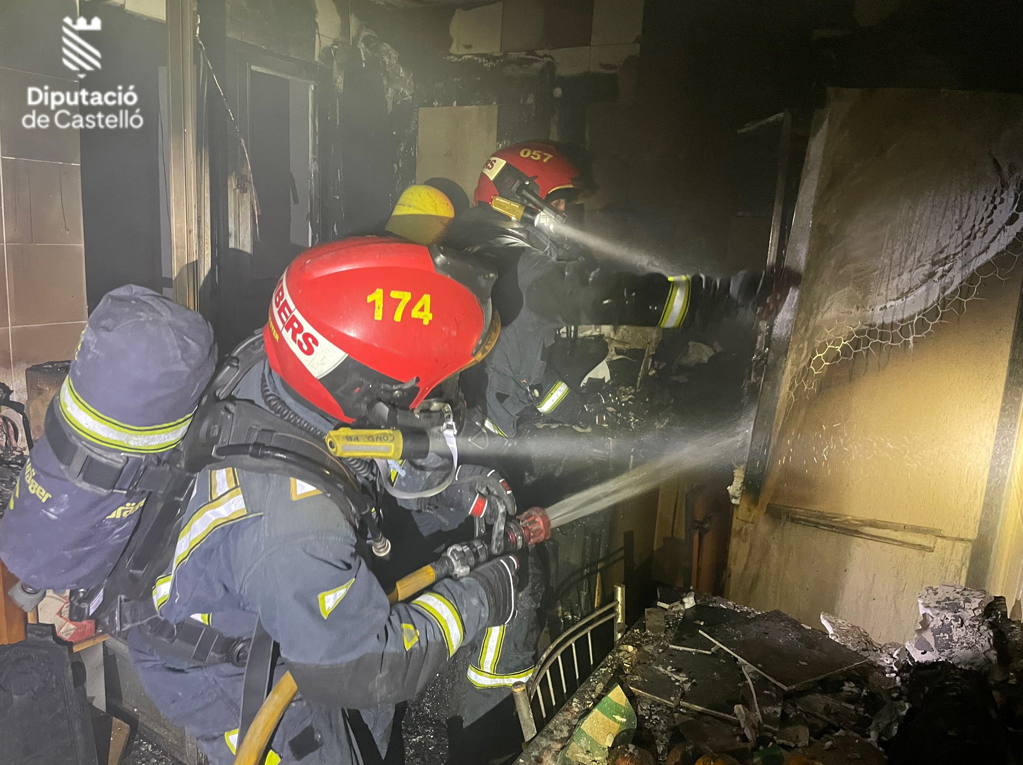 Los bomberos del Consorcio Provincial de Bombers de la Diputació de Castelló han logrado controlar el fuego, que ha afectado gravemente al inmueble, y trabajan ahora en la ventilación del edificio.