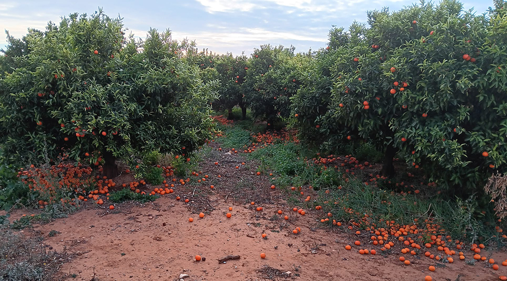 Los asociados damnificados de comarcas citrícolas de Castellón y Valencia denuncian que los comercios con los que habían acordado meses atrás la venta de sus mandarinas o naranjas de primera mitad de la campaña no han acudido a sus campos mientras la fruta se encontraba en perfectas condiciones. Hay casos en los que los ‘collidors’ contratados por el comercio únicamente recogieron parte de la cosecha y el resto se ha quedado en el campo; en otras ocasiones se presentaron varias semanas después de la fecha convenida, por lo que muchas frutas ya estaban sobremaduradas y no llegarán al mercado; e incluso hay casos en los que ni siquiera se ha recolectado ni un kilo de mandarinas, como satsumas y clementinas. La demora de recolección también se ha producido, en menor medida, en el caqui, a pesar de ser un cultivo con mucha demanda en los mercados.