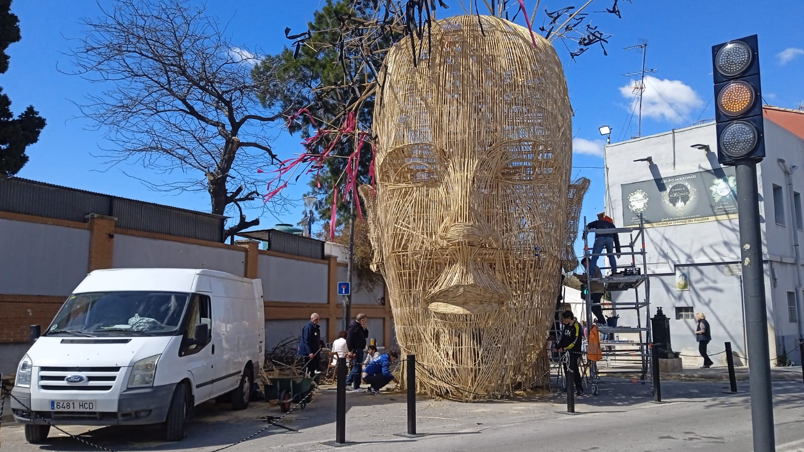 El lobo que puso en la calle Borrull el año pasado fue colosal, todo de paja. Sin saberlo, él era el caperucito que se deja devorar por sus propias creaciones.