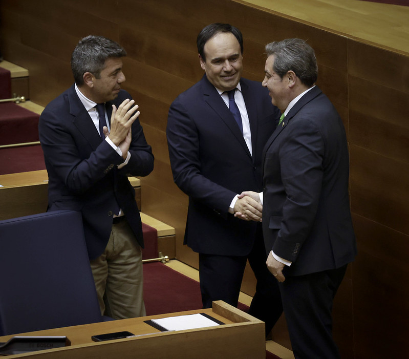 El proceso ha sido inédito en la historia autonómica valenciana: la primera vez que un relevo presidencial se negocia principalmente en Madrid entre PP y Vox, sin acuerdo previo firmado, y con Mazón manteniendo su acta de diputado para preservar el aforamiento. Vox, con 13 escaños, ha sido clave, ya que el PP (40 escaños) necesita mayoría absoluta (50 de 99) en la primera votación. La oposición (PSPV-PSOE con 31 y Compromís con 15) ha criticado el pacto como «opaco» y «exprés», temiendo recortes en derechos y un giro ultraderechista.
