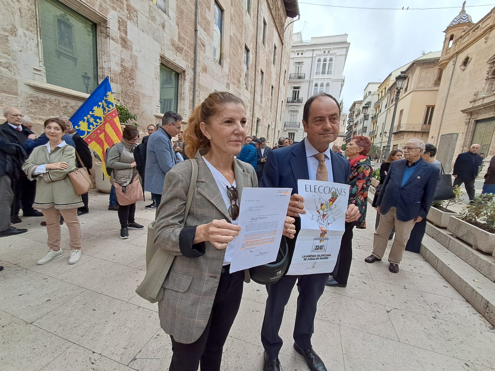 Por lo que respecta a la concentración cerca de un centenar de personas han acudido en representación de muchas entidades, lo que han faltado son políticos actuales que lo apoyen, desde el PSPV han estado los diputados en Corts Valencianes Ernest Blanch, Toni Gaspar, anterior president de Diputació de Valéncia y José Chulvi, desde Compromís la diputada Natalie Torres y el concejal de Valéncia Ferran puchades, y de filas populares que en muchas otras ocasiones sí han acudido hoy sólo ha acudido el ex-diputado Juan Vicente Pérez Aras, nadie de Vox, que se sigue oponiendo al derecho civil propio valenciano que complemente al derecho civil estatal.