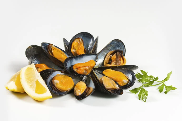 El Tamaño y el Aspecto: La clóchina es sensiblemente más pequeña que el mejillón. Sin embargo, su carne es más compacta y presenta un color naranja más pálido, suave y cremoso, frente al naranja intenso o casi rojizo del mejillón atlántico.
