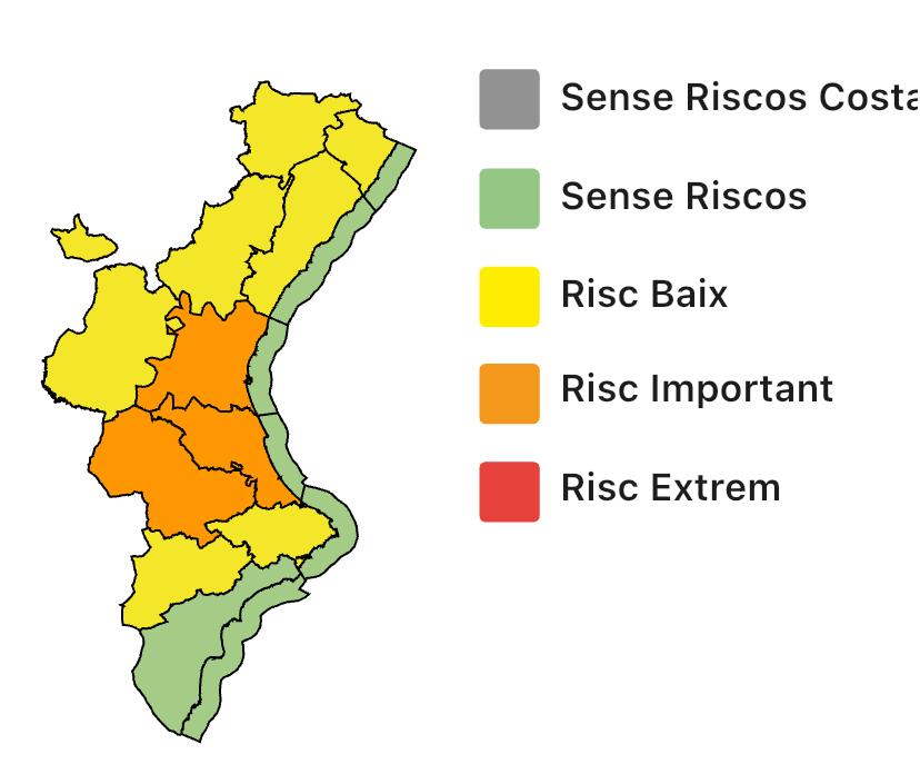 🟡Alerta amarilla en el interior norte de Valencia y en el norte de Alicante